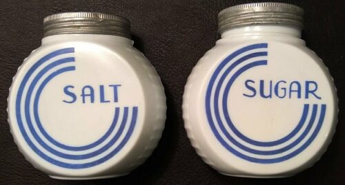 Title (ebay affiliate link): Lot of 2 - Anchor Hocking Vitrock Shakers - Salt & Sugar - Blue Circle - VG