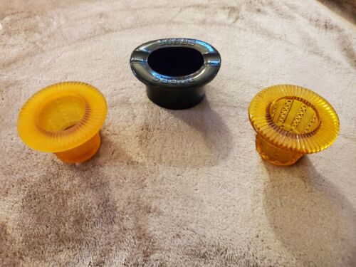 Antique Vintage Glass Hats - Black Dobb''s Ashtray Hat, Frosted & Clear Orange