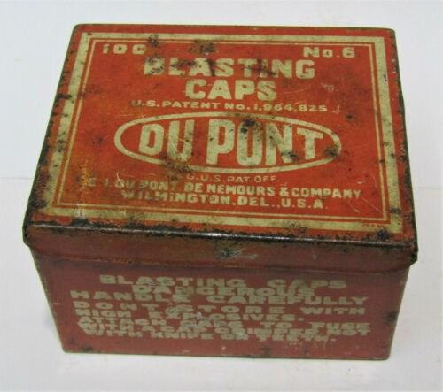Vintage DuPont Blasting Caps Box 100 - No. 6 Metal Tin Box
