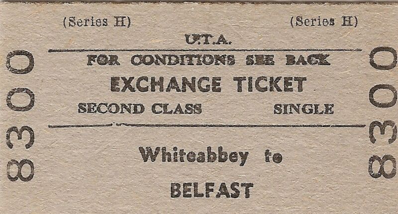 U.T.A. Edmondson Ticket - Whiteabbey to Belfast