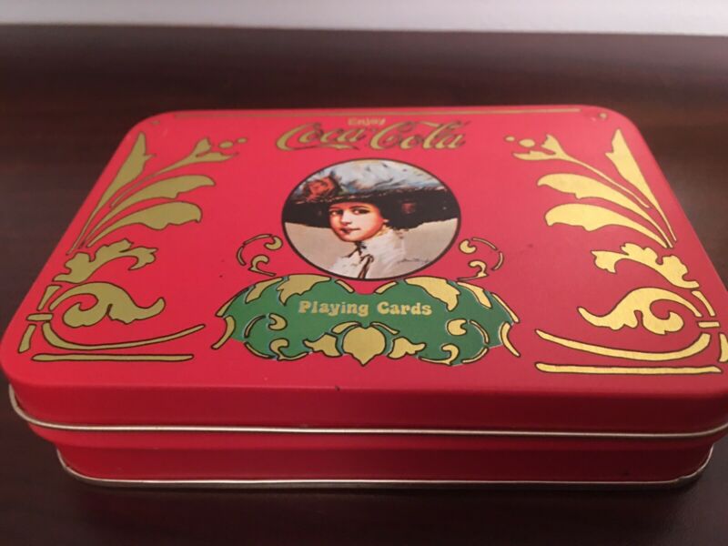 Vintage Coca Cola Victorian Lady Double Deck Playing Cards Tin Case