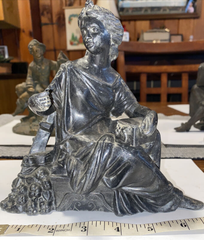 Antique Clocktop Cast Metal Woman Figurine