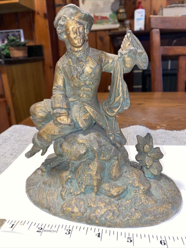 Antique Clocktop Cast Metal Military Man Figurine