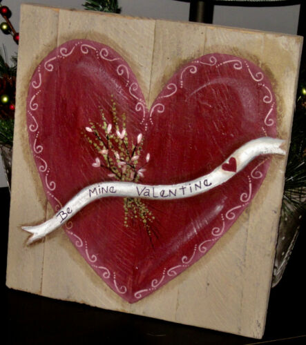*~*PRIMITIVE*~* HP FOLK ART PRIM HEART *~* BE MY VALENTINE *~* RECLAIMED WOOD
