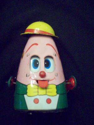 VINTAGE METAL TOY CLOWN ON WHEELS-ECHO MADE- IN JAPAN
