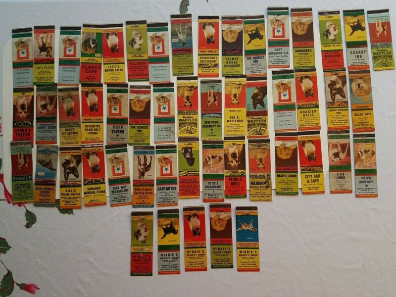 Vintage Matchbook Cover Lot Of 51 Dogs Hair Salons Taverns Restaurants Etc.