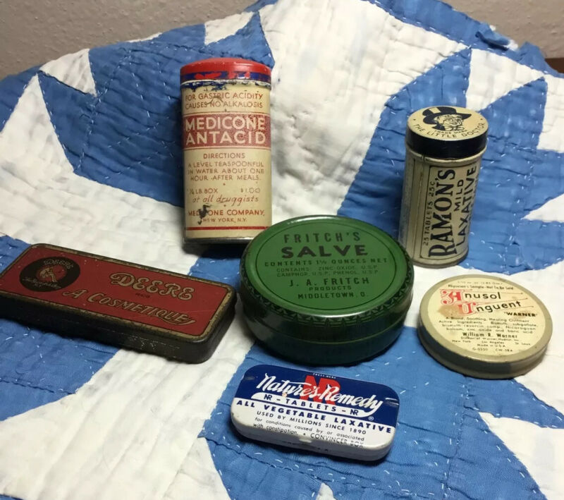 Title (ebay affiliate link): Lot Of 6 tins-medical-salves-cosmetic-laxatives-sample-CCC-