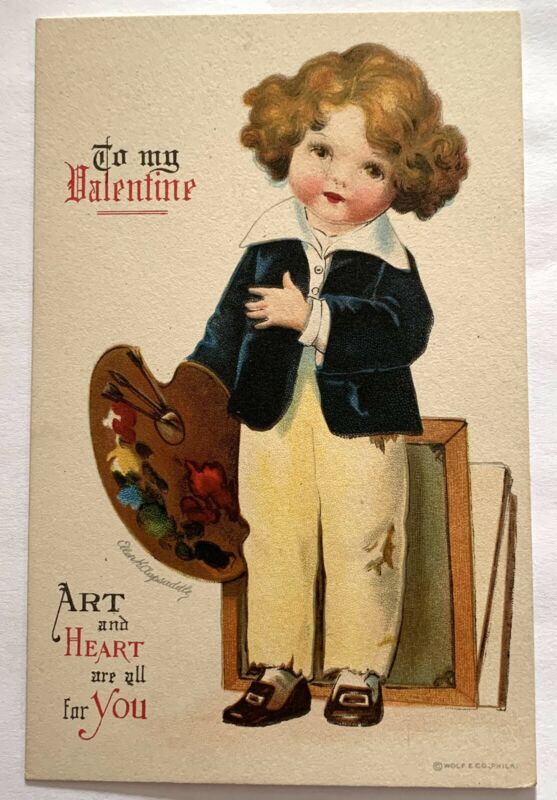 Title (ebay affiliate link): Vintage Wolf Valentine Postcard - Ellen Clapsaddle - Boy Artist
