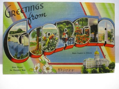 WWII LARGE LETTER POSTCARD " GREETINGS FROM GEORGIA " , W/ SITES SOLDIER CANCEL