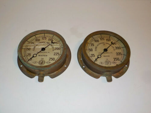 2 Vintage GLOBE AUTOMATIC SPRINKLER CO. Water Gauges MOTO METER Copper Steampunk