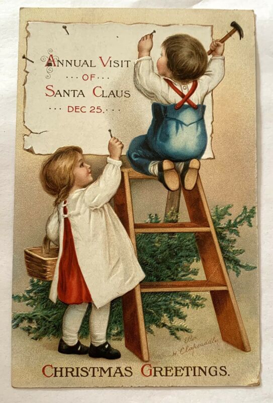 Title (ebay affiliate link): Vintage Christmas Postcard - Ellen Clapsaddle - Children Hang Santa Sign