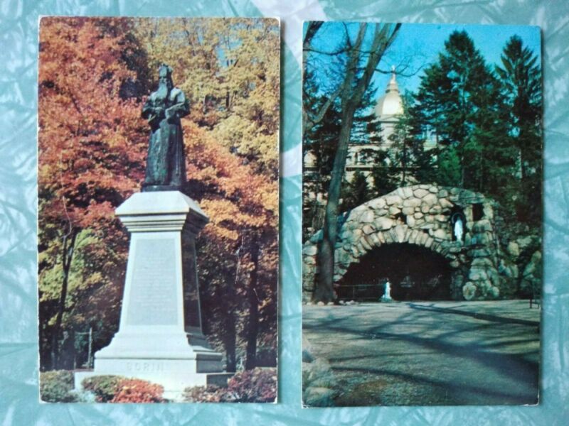 Title (ebay affiliate link): 2 Notre Dame, Indiana postcards, Sorin Statue and Grotto of our Lady of Lourdes