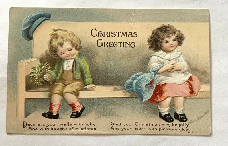 Title (ebay affiliate link): Vintage Christmas Postcard - Ellen Clapsaddle - Shy Boy & Girl On Bench