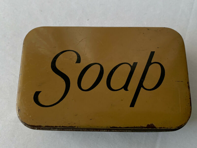 Vintage Hinged Soap Tin Brown w/Black Print