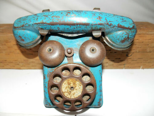 Title (ebay affiliate link): Vintage Toy Tin Metal Rotary Red Telephone The Gong Bell Mfg. Co. Speed Phone