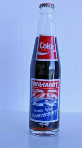 Title (ebay affiliate link): CocaCola WALMART 25th Anniversary Full Bottle 10oz Coke 1962-1987 Collector M54C