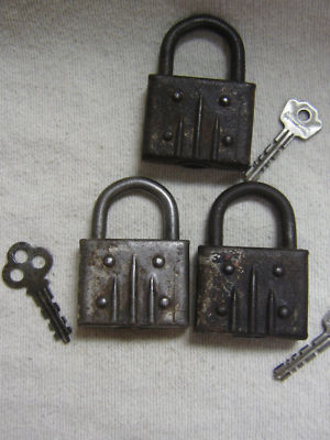 Old RARE & UNIQUE ANTIQUE Padlocks (3) w/ all KEYS