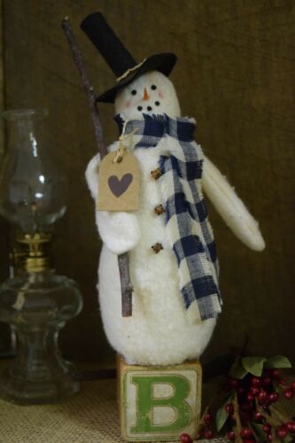 Title (ebay affiliate link): Handmade Primitive Rustic Winter Snowman on Vintage Wooden Block 8"H