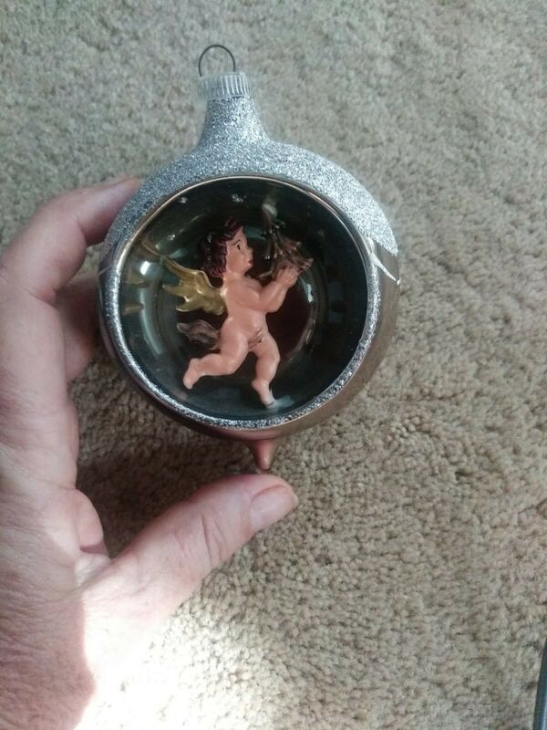 Title (ebay affiliate link): VINTAGE INDENT CHRISTMAS ORNAMENT WITH ANGEL WITH MICA
