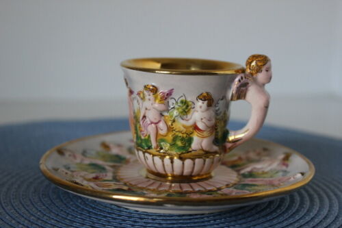 Title (ebay affiliate link): LOVELY CAPODIMONTE DEMITASSE CUP AND SAUCER, GOLD INTERIOR, #745