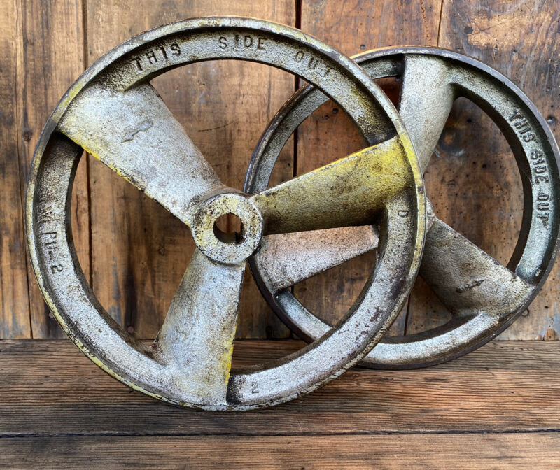 Title (ebay affiliate link): Lot of 2 Vintage Cast Iron Gear Wheels / Flywheels ~ Vintage Industrial Wheels
