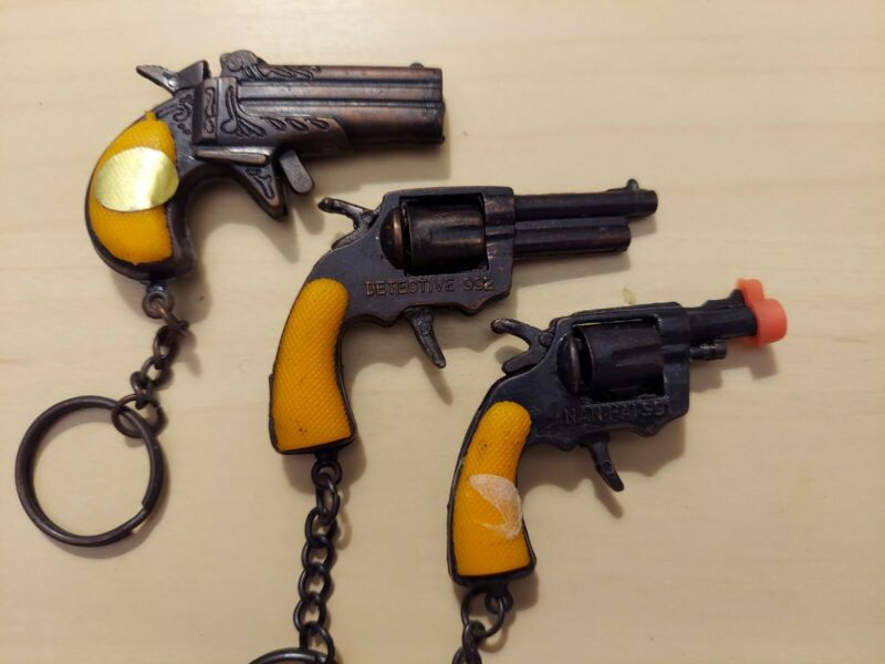 Title (ebay affiliate link): Vintage die cast key chain cap gun locked Dillinger 995, detective 992, Nan Hai