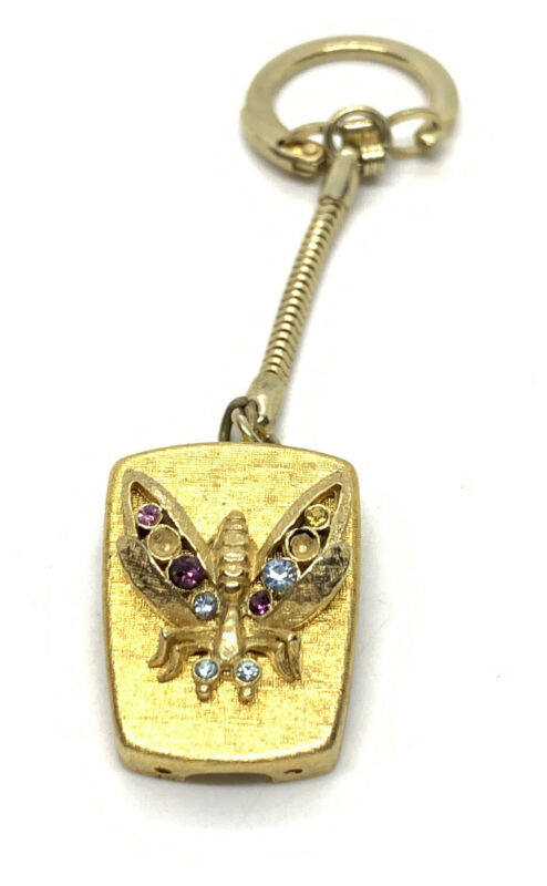 Vintage Rhinestone Gold Tone Butterfly Key Chain
