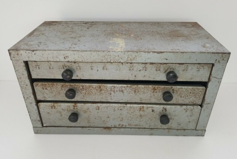 Vintage 3 Drawer Industrial Metal Tool Bits Parts Storage Cabinet