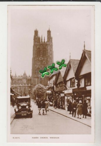 BRIDGE HOUSE PHOTO POSTCARD - PARISH CHURCH, WREXHAM ( INCL CAR, SHOPS ETC)
