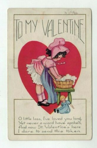 Title (ebay affiliate link): Antique Whitney Embossed Valentines Post Card - Little Girl Washes Doll Clothes