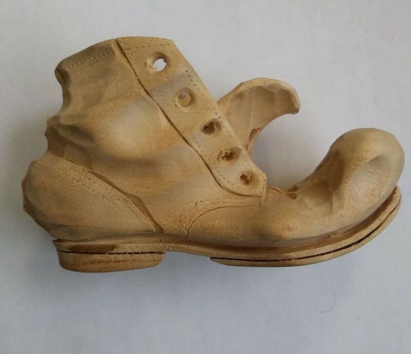 Wooden Shoe Planter Hand Carved Vintage Folk Art