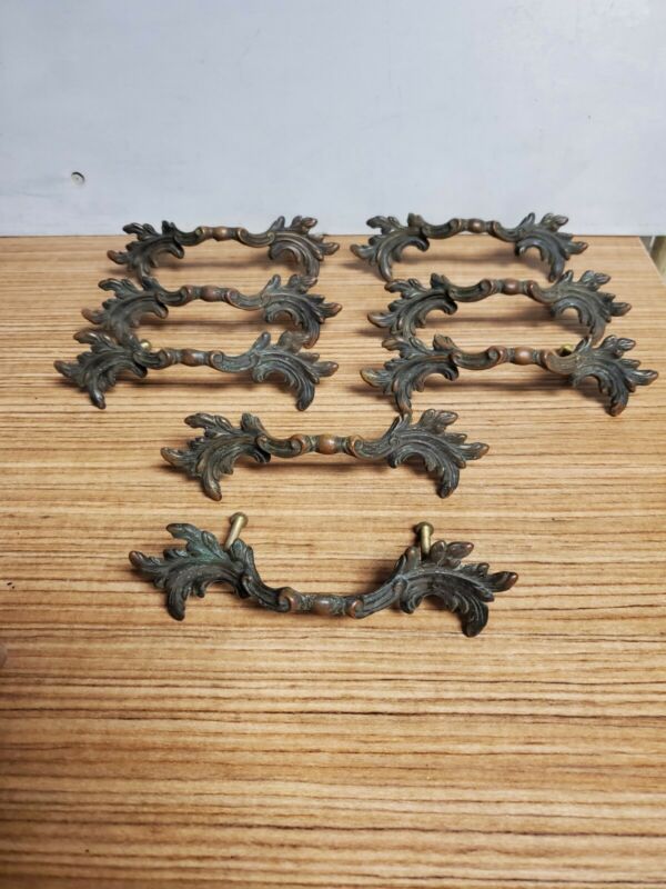 Vintage Lot of 8 Brass French Provincial Drawer furniture Pull Handles