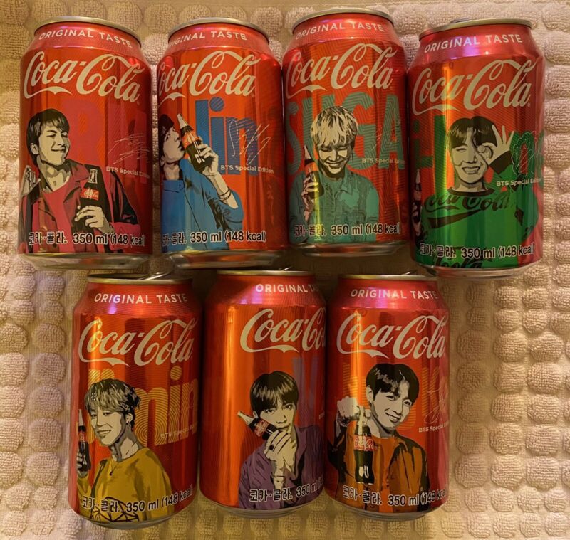 Title (ebay affiliate link): Coca Cola BTS Collaboration Can Set Jin V RM Jungkook Suga Jimin J-Hope