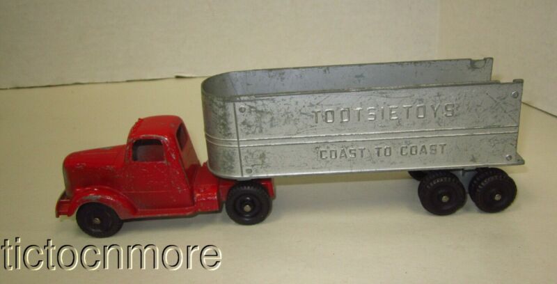 Title (ebay affiliate link): VINTAGE TOOTSIETOY COAST TO COAST DELIVERY TRAILER TRUCK RED CAB MODEL CAR TOY