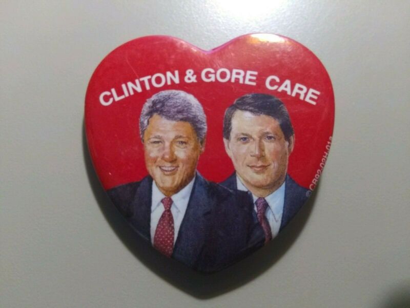 Title (ebay affiliate link): Heart Shaped Clinton and Gore Care 1992 Campaign button pin pinback