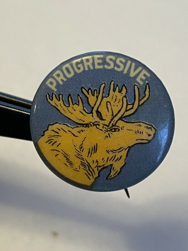 Title (ebay affiliate link): Unique Lt. Blue 1912 Bull Moose Party Theodore Roosevelt 7/8" Pinback Button