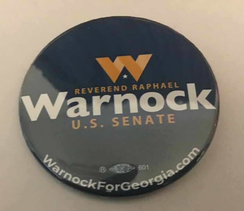 Title (ebay affiliate link): Raphael Warnock 2020/2021 senate campaign button. 2.25". GA democratic senator.