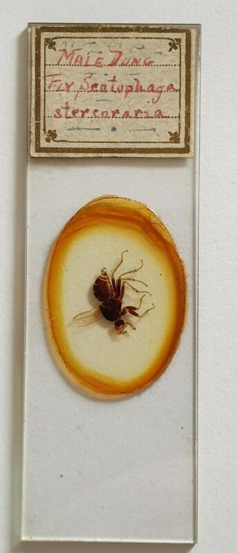 Title (ebay affiliate link): FINE ANTIQUE WHOLE INSECT MICROSCOPE SLIDE MALE DUNG FLY.