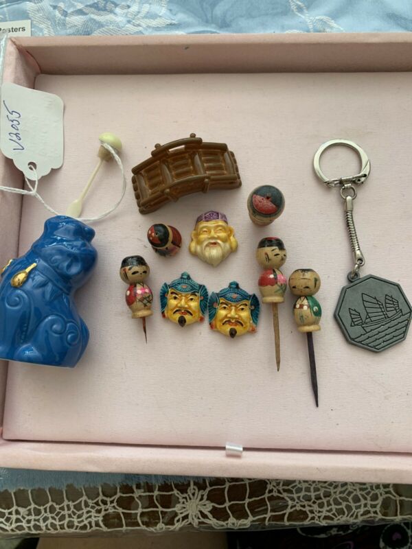 Title (ebay affiliate link): Sale! Odd Old Mixed Findings Lot Asian Tiny Doll Toothpick Dog Perfume Keychain