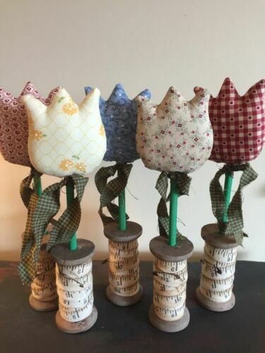 Title (ebay affiliate link): PRIMITIVE RAGGEDY SPRING EASTER BOBBIN FLOWERS -SET 0F 5