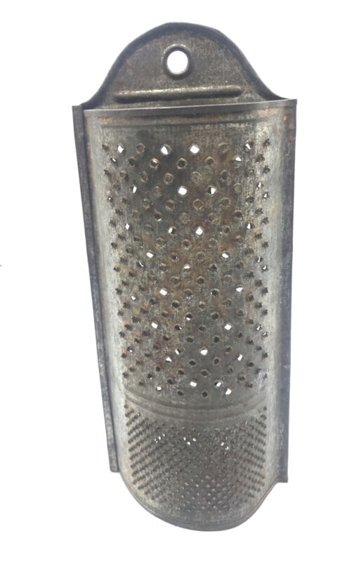 Title (ebay affiliate link): Early Antique Primitive Hanging Tombstone Top Hand Punched 3 Part Tin Grater