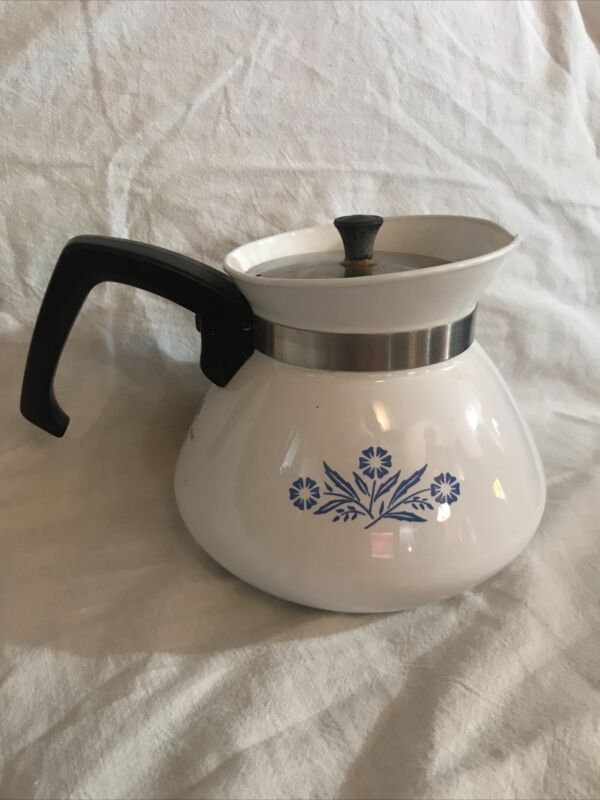 Vintage 6 Cup Corning Ware Coffee Pot With Lid, Blue Cornflower Nice Tea Pot