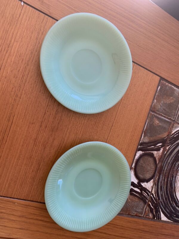 Lot of 2 Vintage Fire King Jadite Jadeite Jane Ray Saucers Green Milk Glass