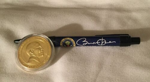 2 OBAMA = COIN + SIGNATURE PEN USA FLAG PRESIDENT EAGLE SEAL CHALLENGE Two pc