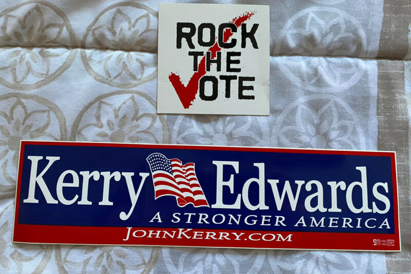 Title (ebay affiliate link): Kerry/Edwards Presidential Bumper Sticker Plus Rock The Vote! Sticker