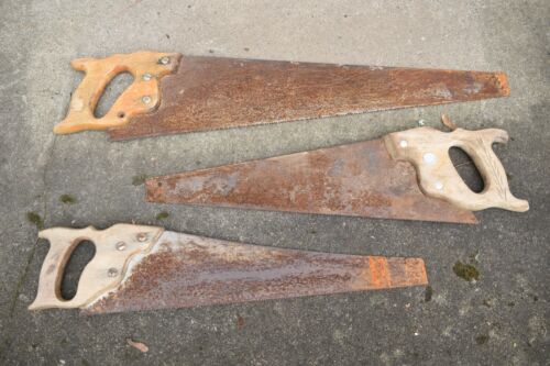 3 Vintage Rusty Hand Saws Carpentry Woodworking Repurpose Warranted Disston USA