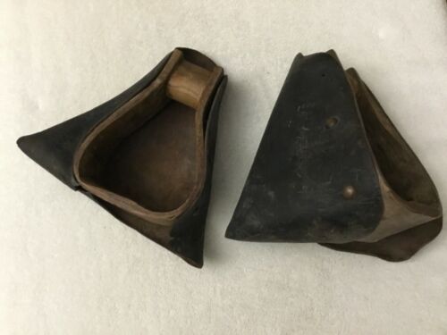EARLY ANTIQUE WOOD & LEATHER HORSE STIRRUPS CIVIL WAR?