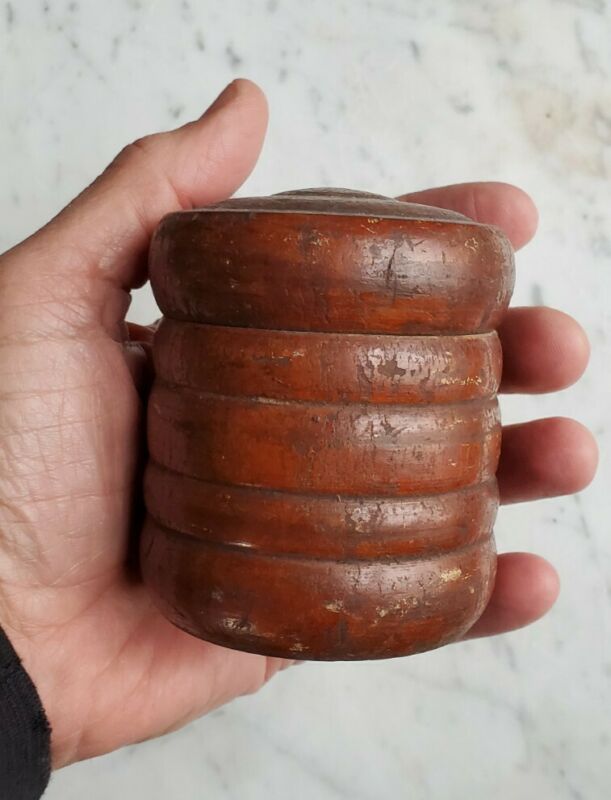 ANTIQUE WOOD LIDDED TREEN PINE BOX CONTAINER