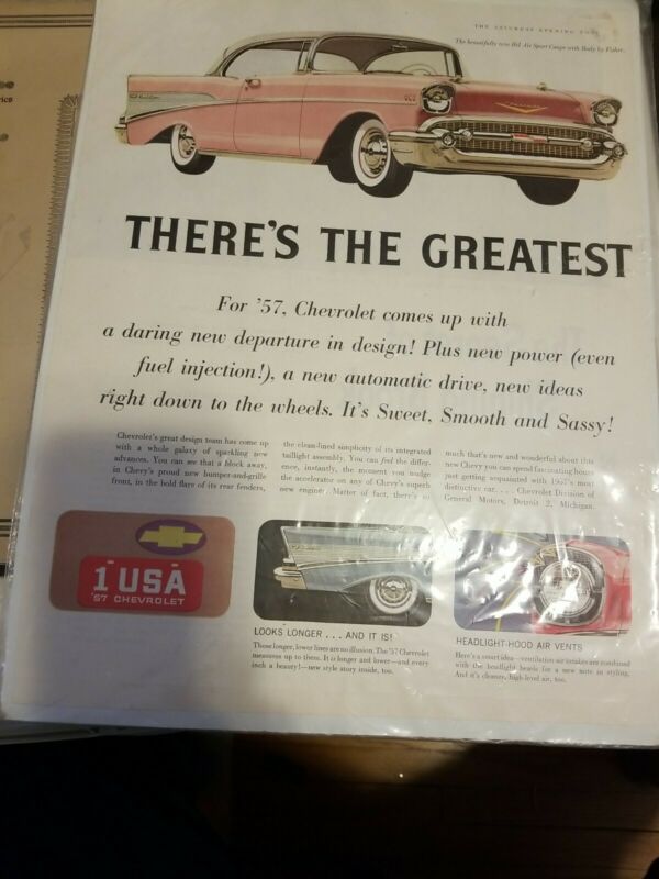 1957 Chevie Chevrolet Advertising Poster 14x10 On Cardboard Backing Inside...