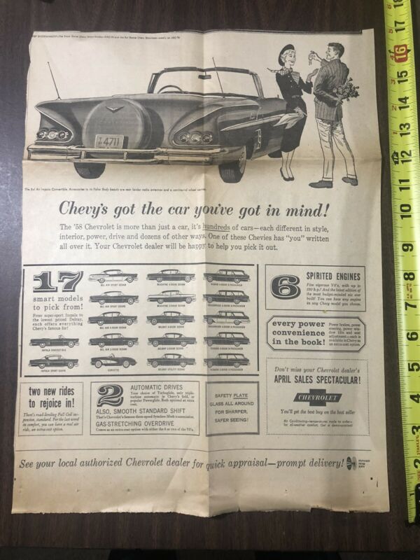 Title (ebay affiliate link): Original Vintage Chevrolet Sedan 1958 Cut Newspaper Ad